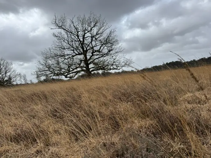 We wandelen vooral over bospaden en langs heidevelden, afgewisseld met vlonders en hier en daar een stukje fietspad. De lente laat zich voorzichtig zien, en we genieten van de frisse kleuren en de geur van het bos. Ondanks de drukte, veel gezinnen en zelfs hele families doen mee, is het onderweg heerlijk rustig om ons heen. We stappen lekker door.